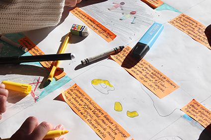 Le travail amorcé auprès des élèves de CM2 s'est malheureusement trouvé interrompu par l'urgence sanitaire. Les interventions en école ne pouvant reprendre, l'idée de départ a dû être réadaptée sous forme d’un programme “clé en main” remis à l’enseignante : le kit de transmission.