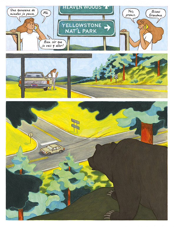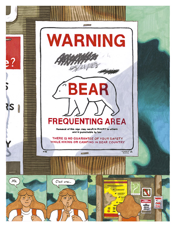 Cette fiction est suivie d’un reportage dessiné en annexe : Vivre en pays grizzly, prépublié dans la revue TOPO au printemps 2024 sous le titre Touchez pas aux grizzlys.