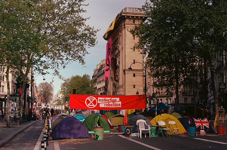 Occupation de la porte Saint-Denis par Extinction Rebellion